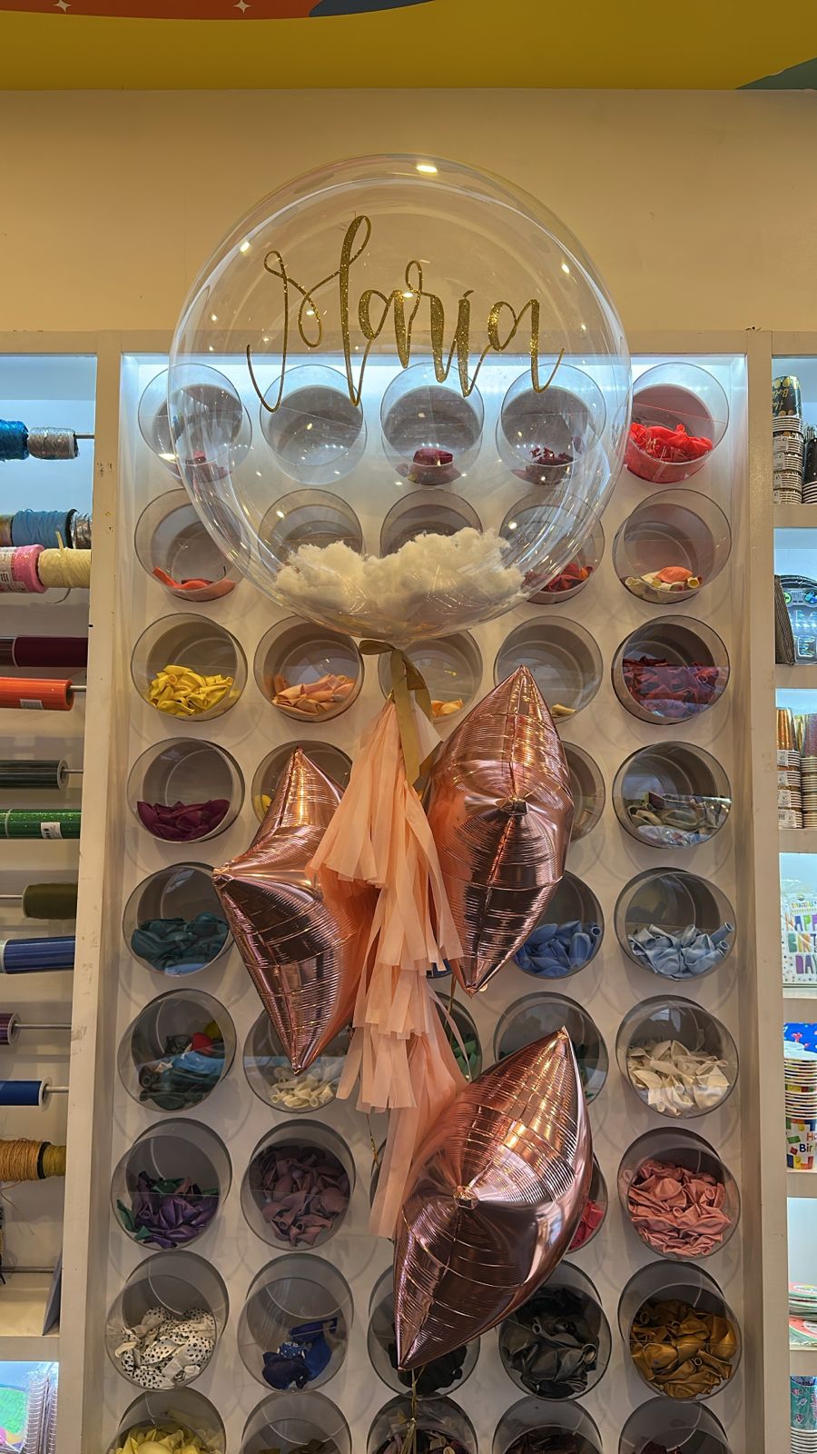 La imagen es sólo un ejemplo del estilo de globo, debido a que tu globo es totalmente personalizado, no quedara como el de la foto.