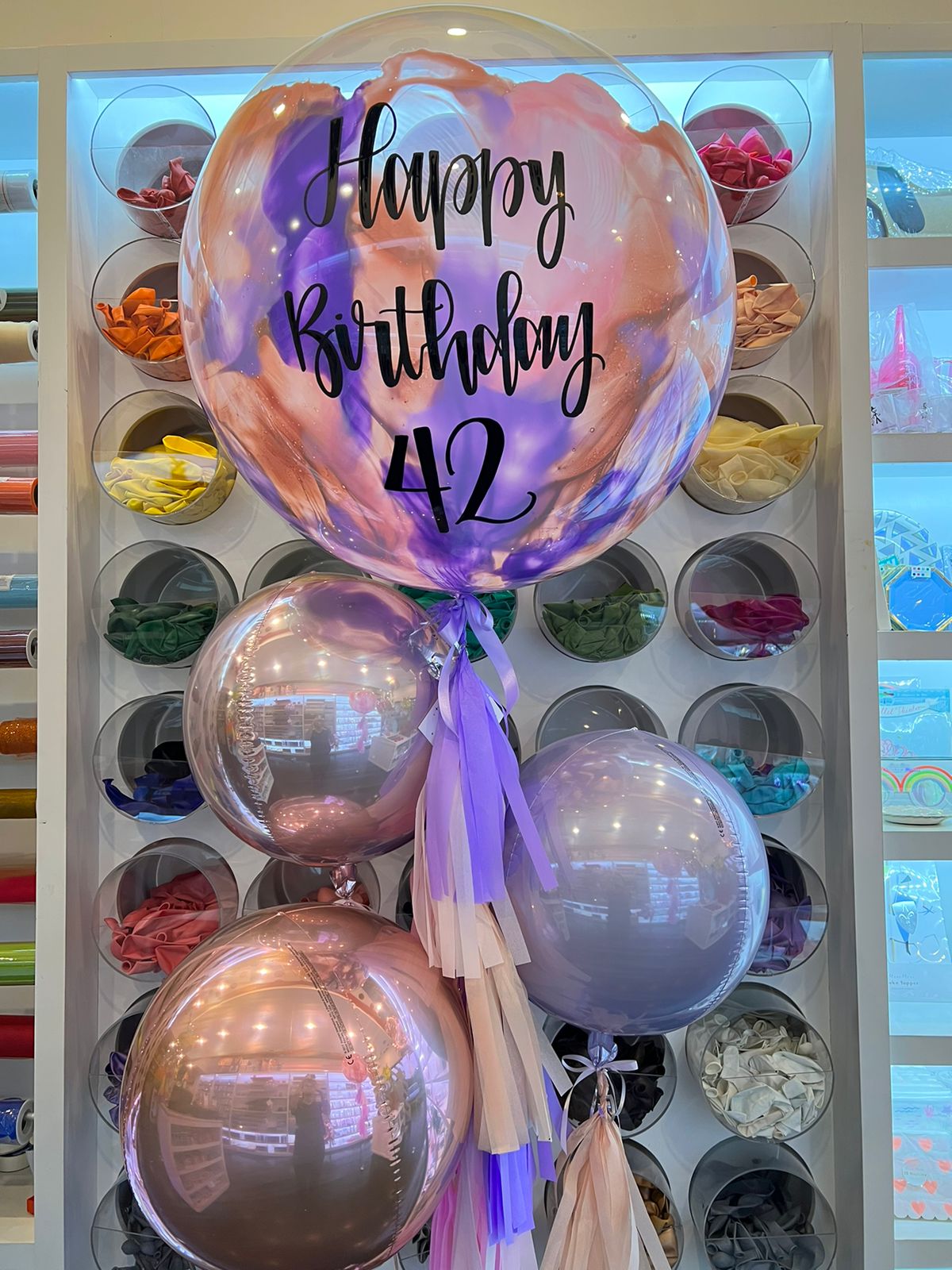 La imagen es sólo un ejemplo del estilo de globo, debido a que tu globo es totalmente personalizado, no quedara como el de la foto.