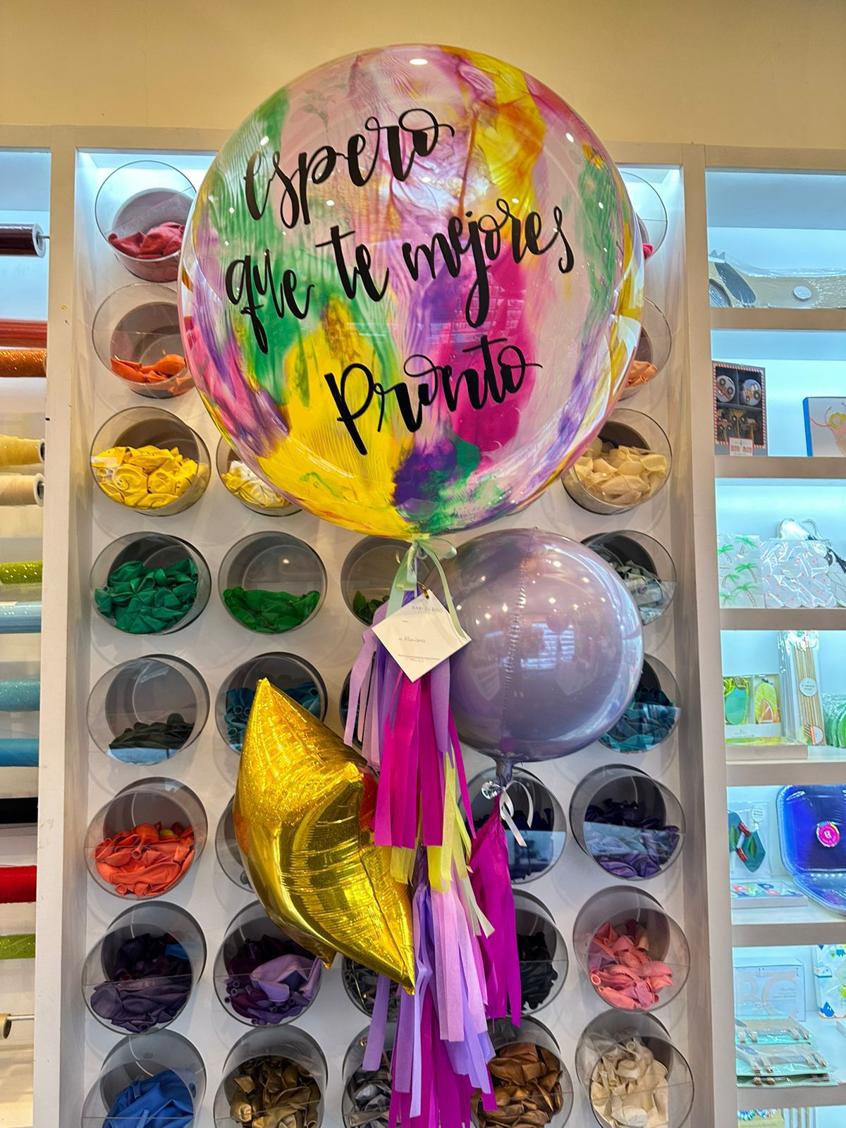 La imagen es sólo un ejemplo del estilo de globo, debido a que tu globo es totalmente personalizado, no quedara como el de la foto.