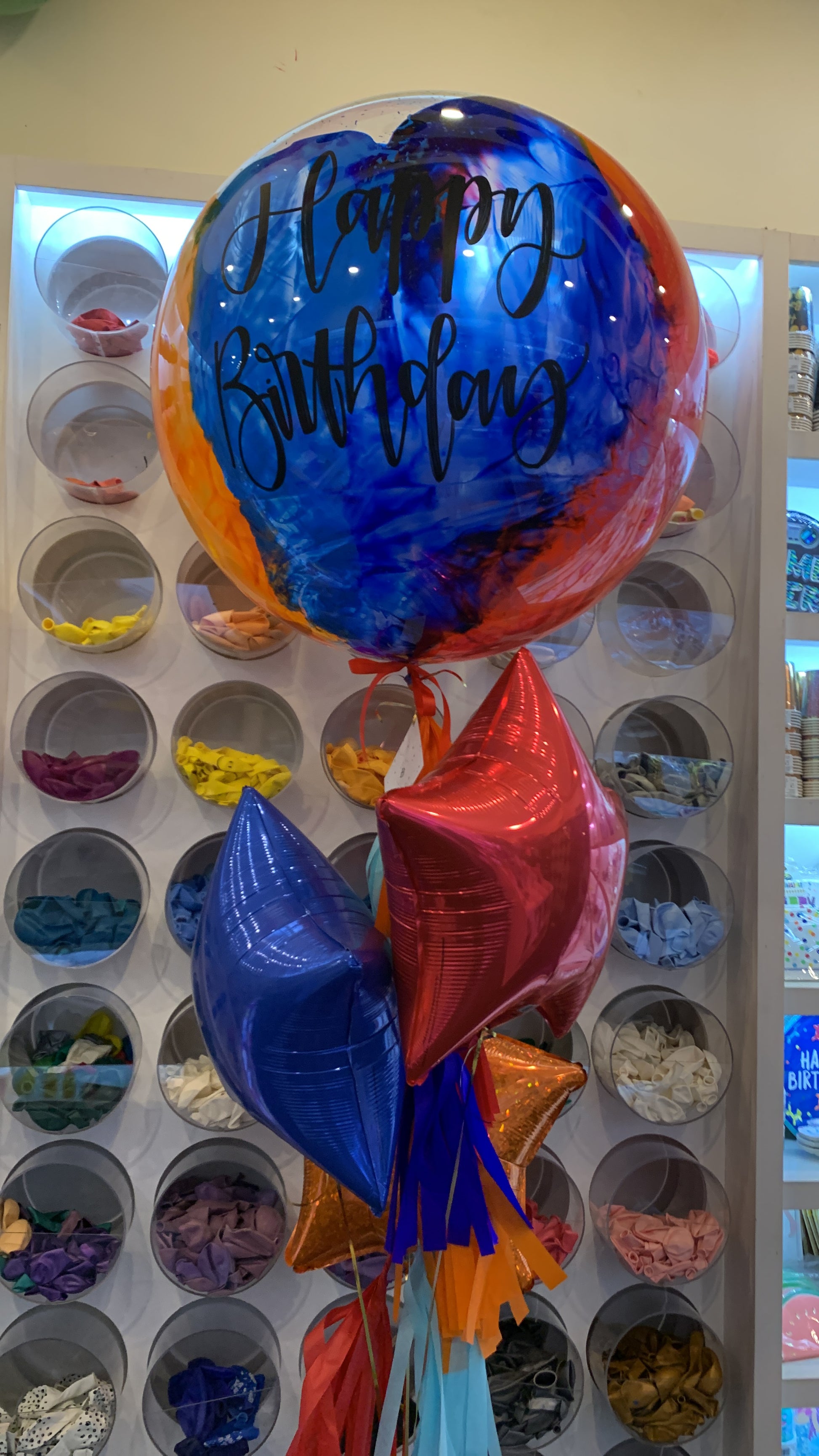 La imagen es sólo un ejemplo del estilo de globo, debido a que tu globo es totalmente personalizado, no quedara como el de la foto.
