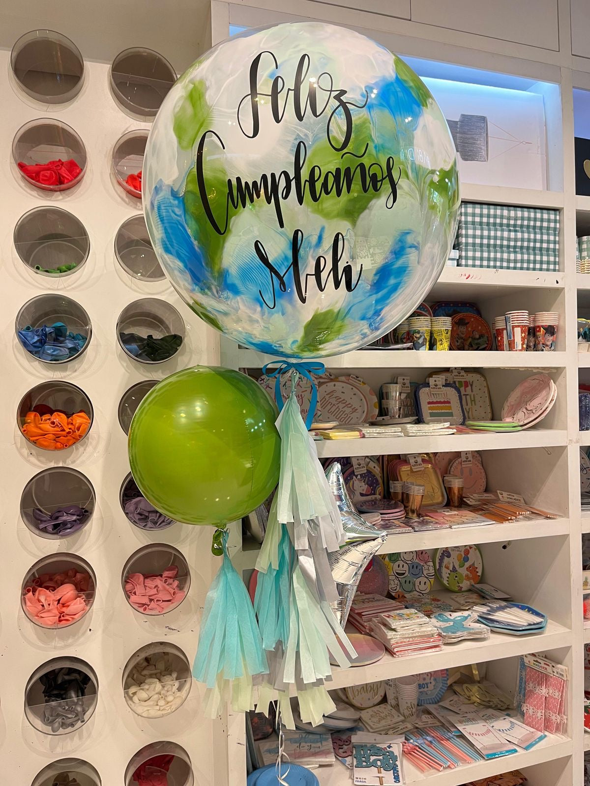 La imagen es sólo un ejemplo del estilo de globo, debido a que tu globo es totalmente personalizado, no quedara como el de la foto.