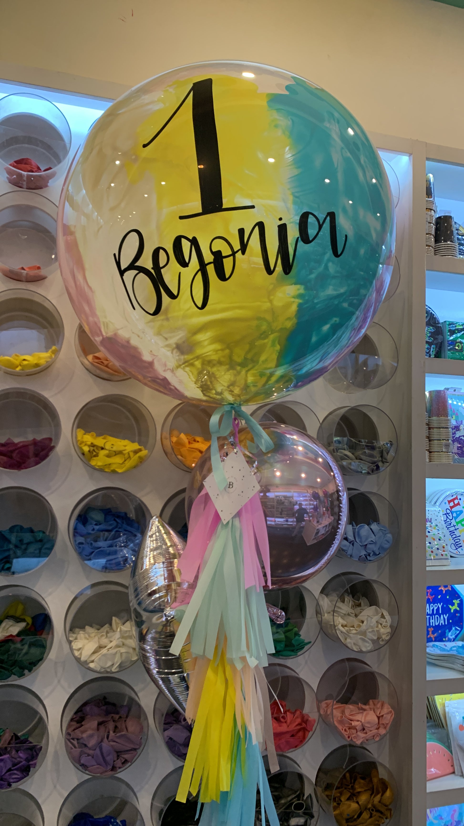 La imagen es sólo un ejemplo del estilo de globo, debido a que tu globo es totalmente personalizado, no quedara como el de la foto.