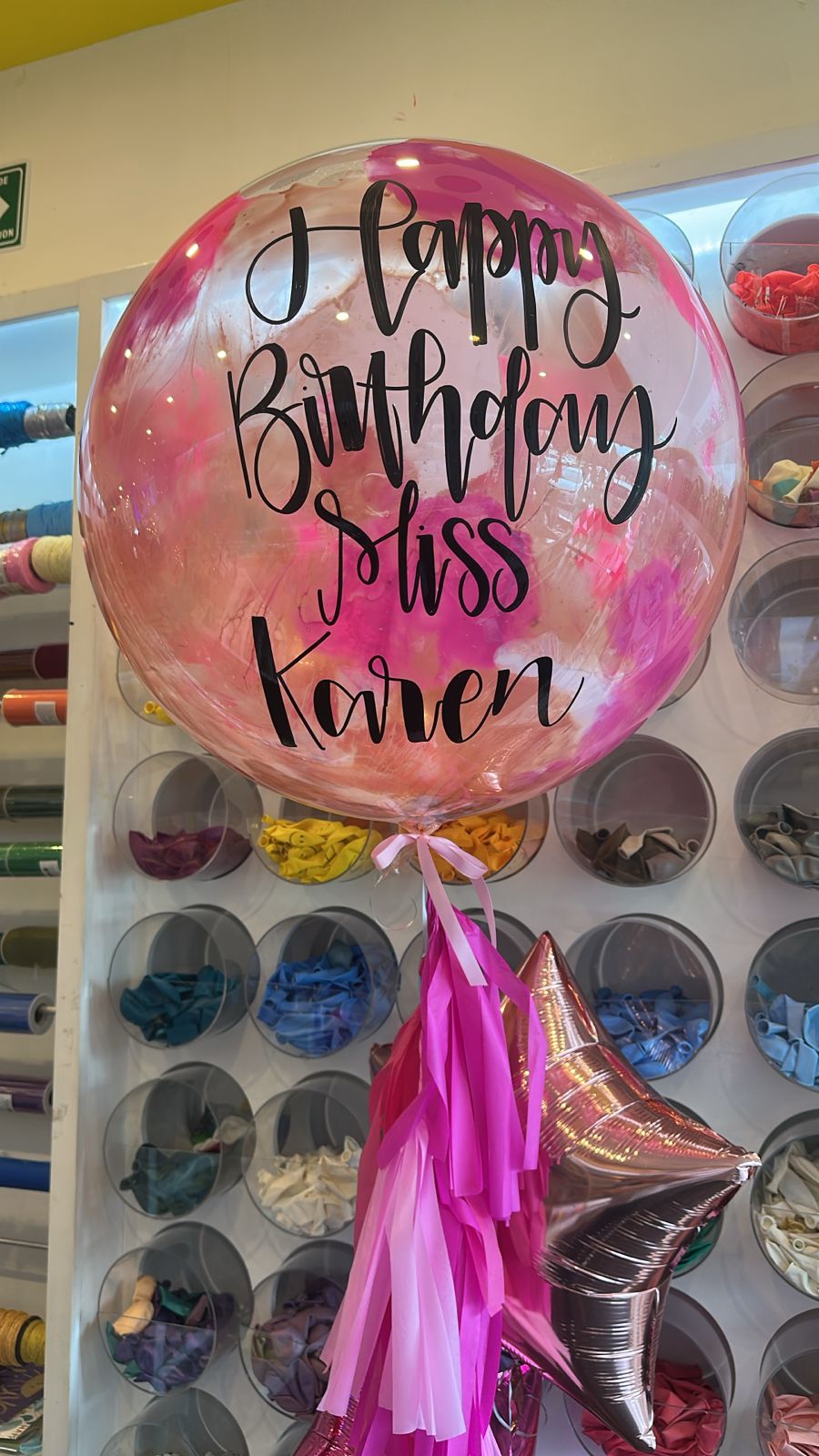 La imagen es sólo un ejemplo del estilo de globo, debido a que tu globo es totalmente personalizado, no quedara como el de la foto.