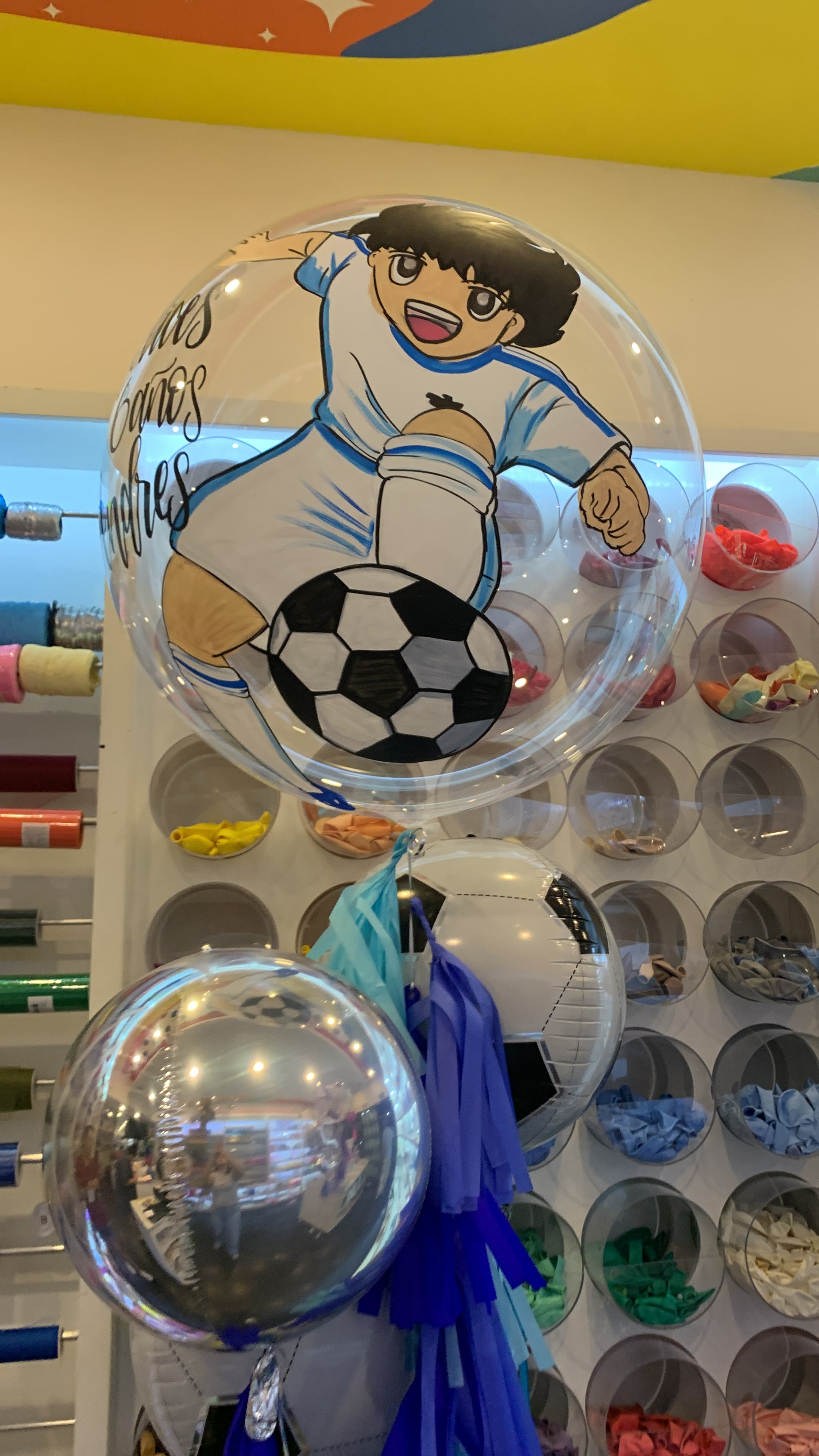 La imagen es sólo un ejemplo del estilo de globo, debido a que tu globo es totalmente personalizado, no quedara como el de la foto.