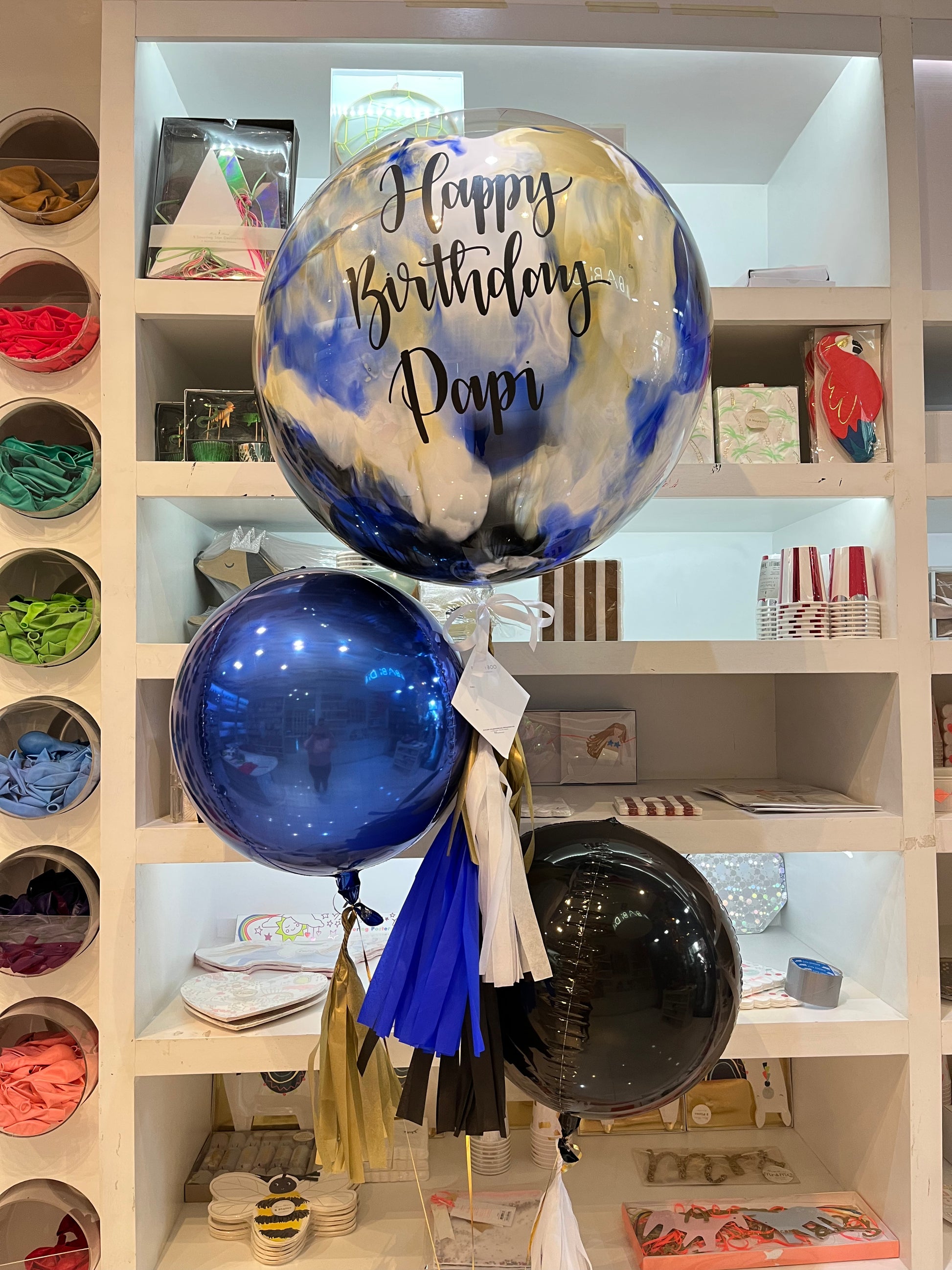 La imagen es sólo un ejemplo del estilo de globo, debido a que tu globo es totalmente personalizado, no quedara como el de la foto.