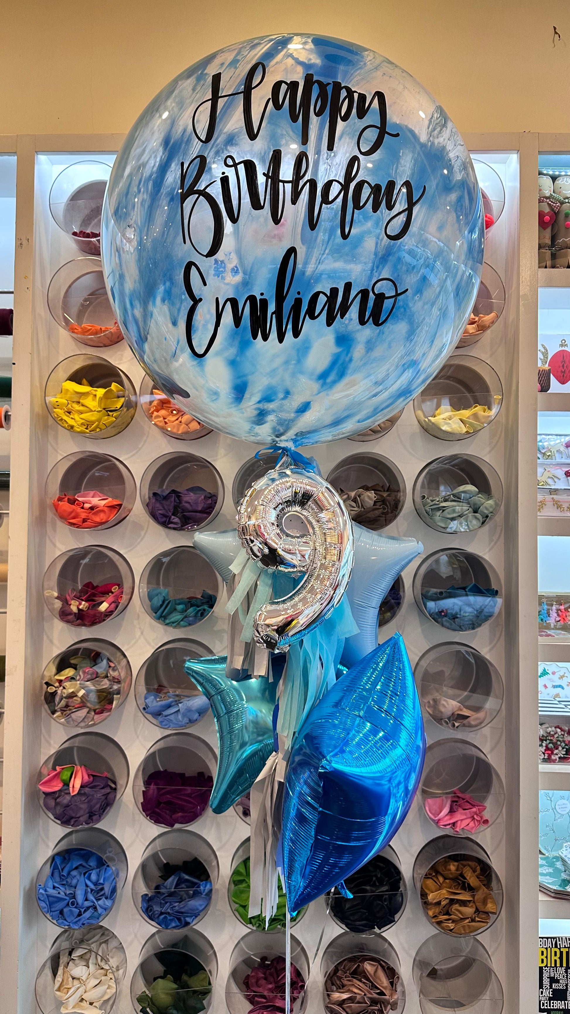 La imagen es sólo un ejemplo del estilo de globo, debido a que tu globo es totalmente personalizado, no quedara como el de la foto.