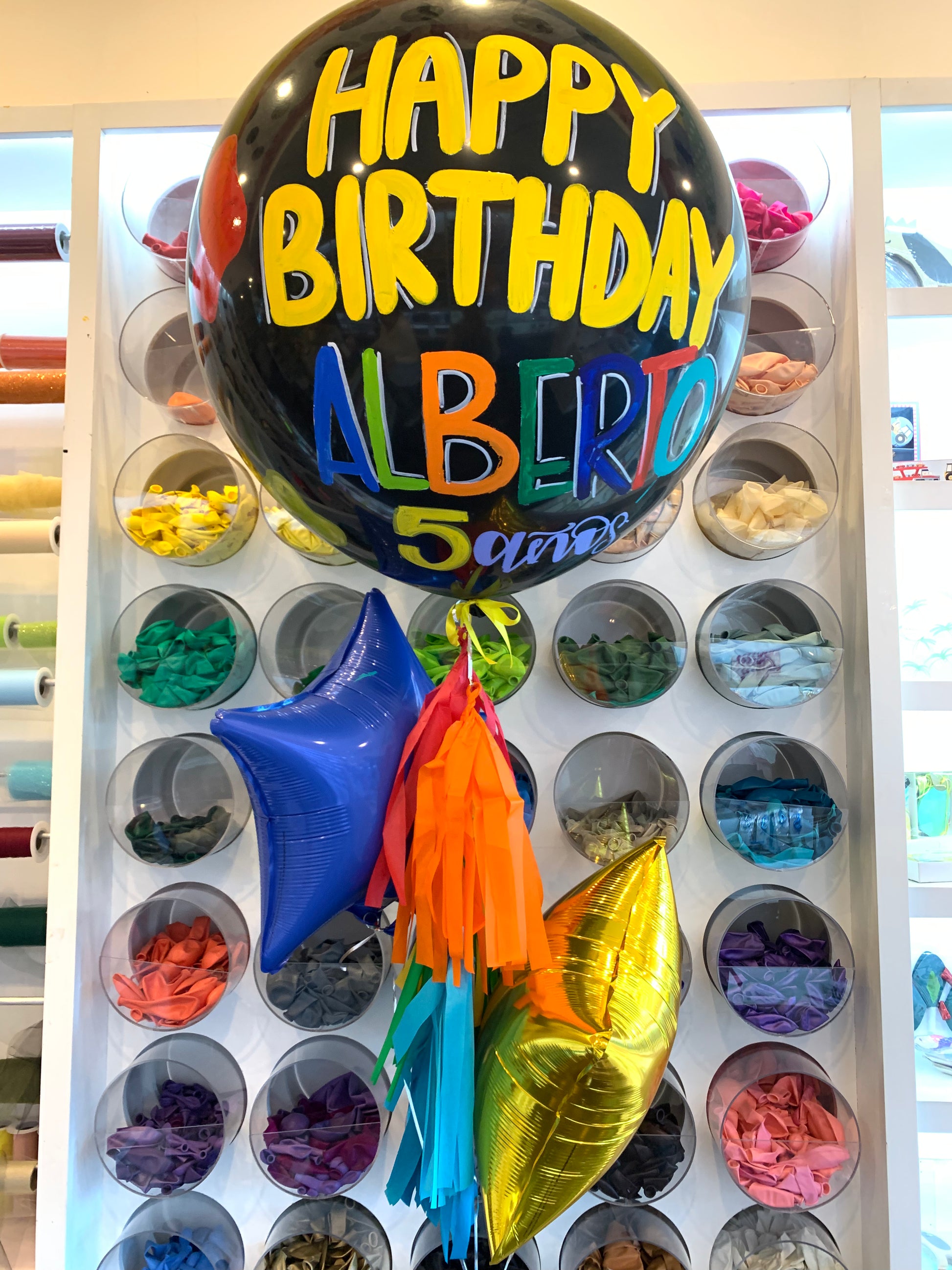La imagen es sólo un ejemplo del estilo de globo, debido a que tu globo es totalmente personalizado, no quedara como el de la foto.