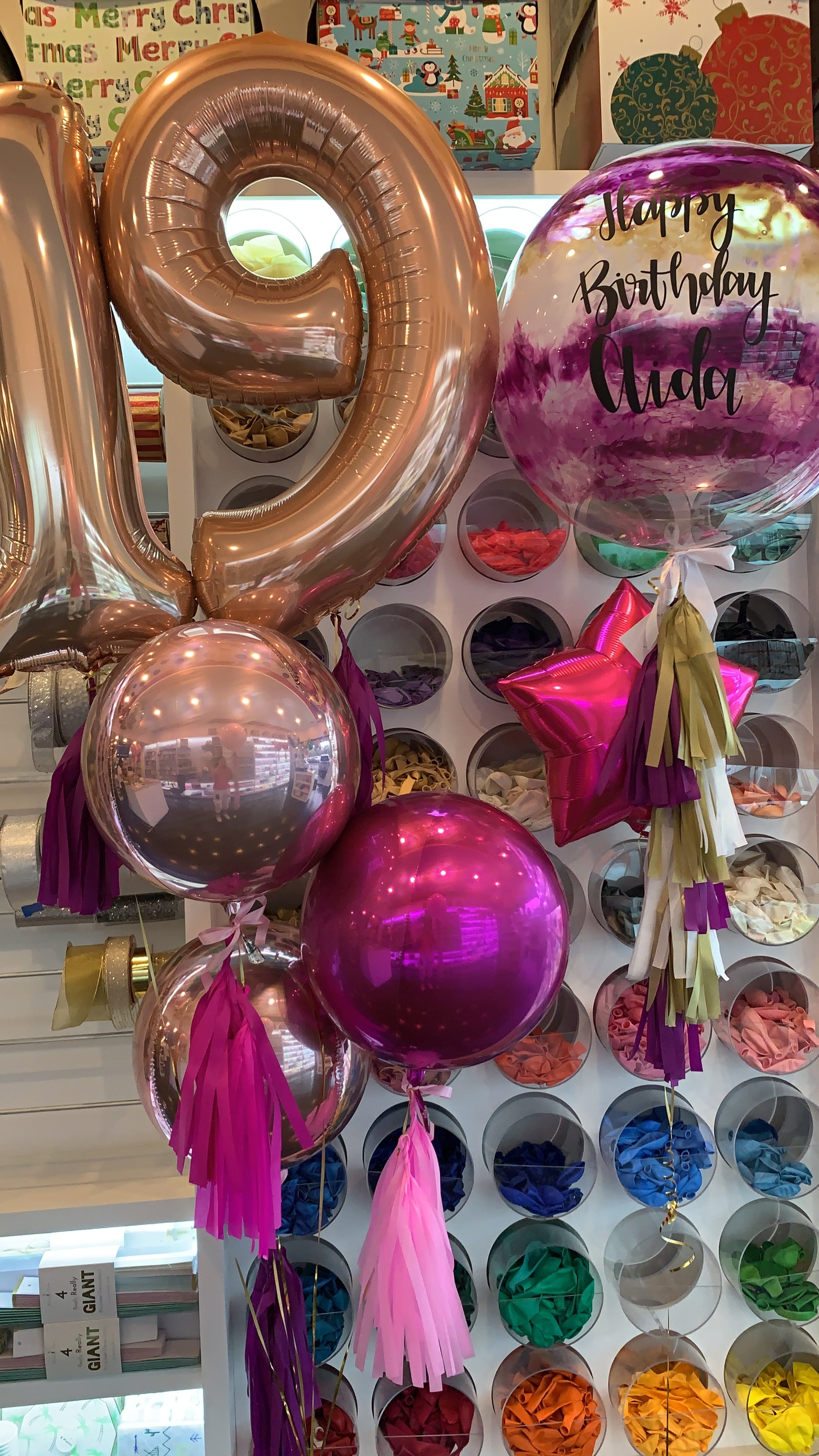 La imagen es sólo un ejemplo del estilo de globo, debido a que tu globo es totalmente personalizado, no quedara como el de la foto.
