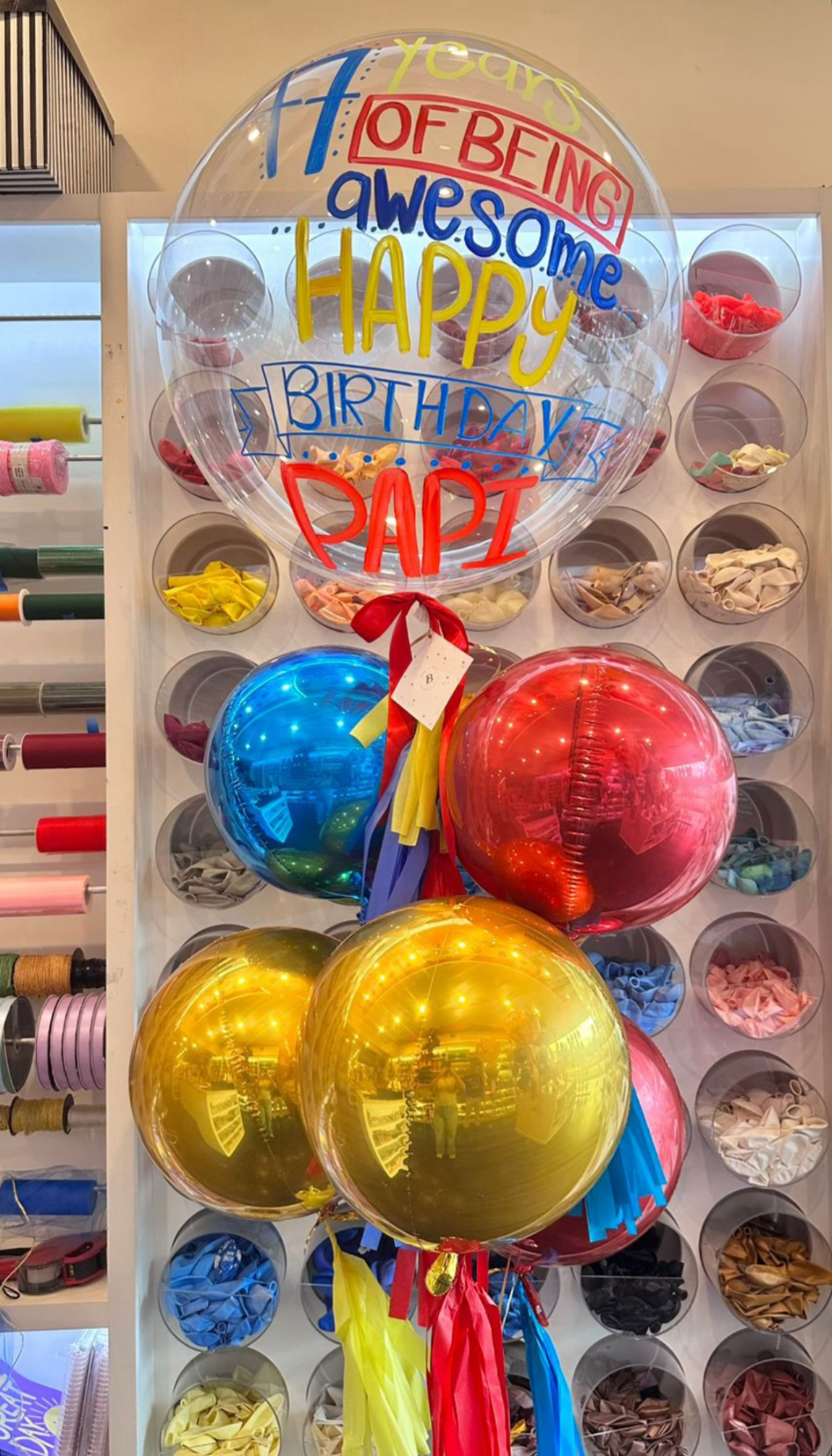 La imagen es sólo un ejemplo del estilo de globo, debido a que tu globo es totalmente personalizado, no quedara como el de la foto.