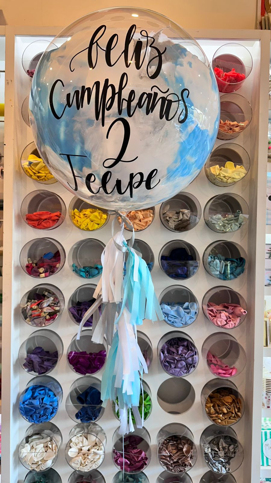 La imagen es sólo un ejemplo del estilo de globo, debido a que tu globo es totalmente personalizado, no quedara como el de la foto.