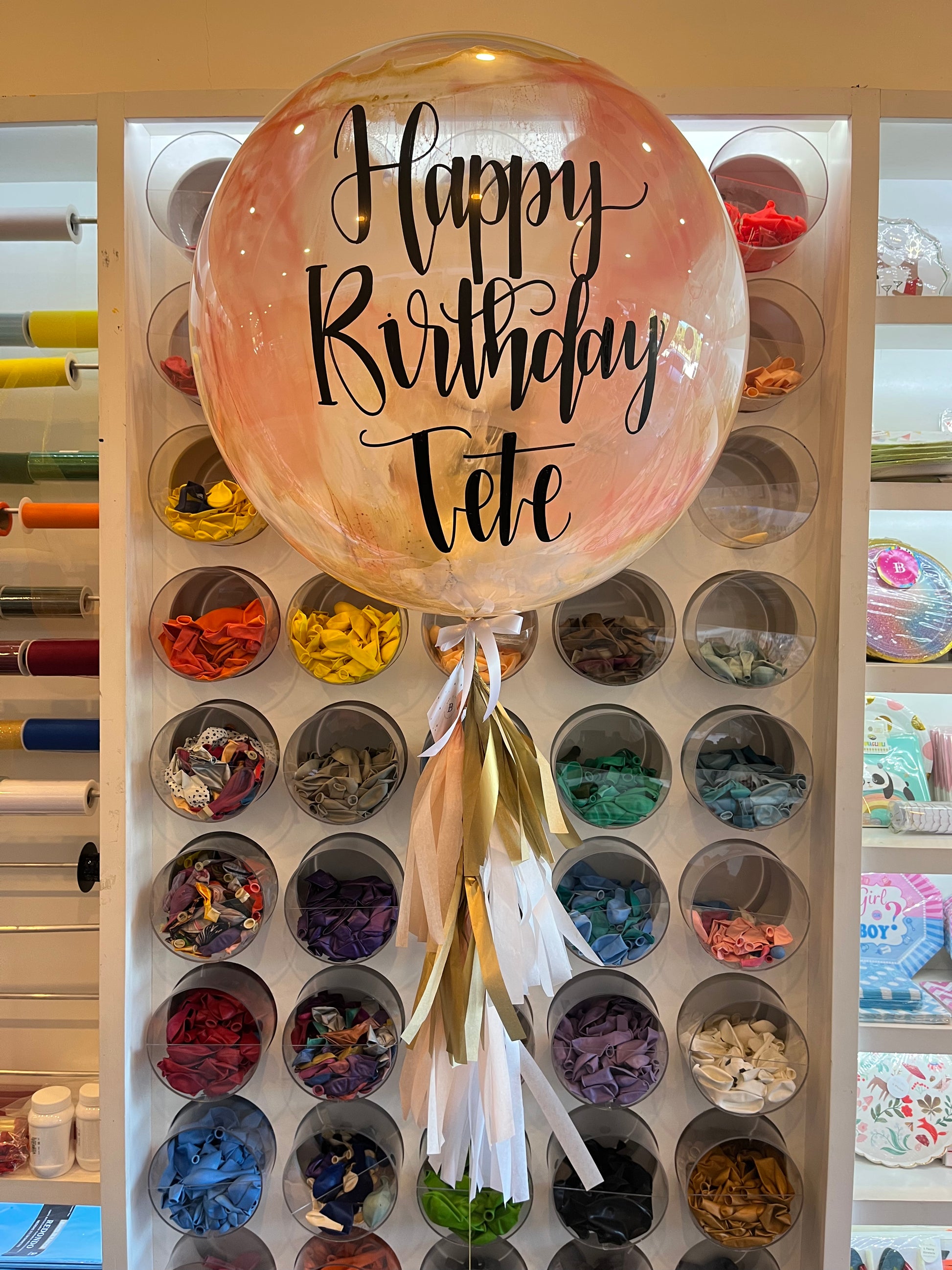 La imagen es sólo un ejemplo del estilo de globo, debido a que tu globo es totalmente personalizado, no quedara como el de la foto.