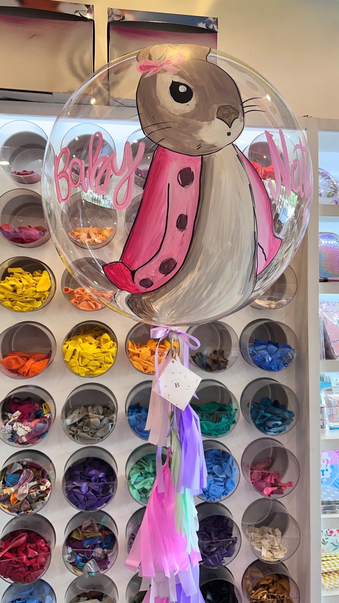 La imagen es sólo un ejemplo del estilo de globo, debido a que tu globo es totalmente personalizado, no quedara como el de la foto.