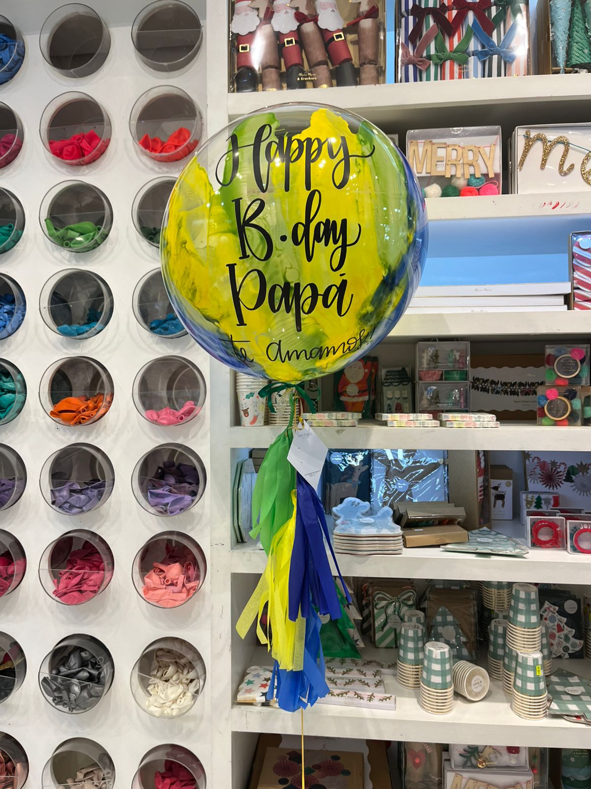 La imagen es sólo un ejemplo del estilo de globo, debido a que tu globo es totalmente personalizado, no quedara como el de la foto.