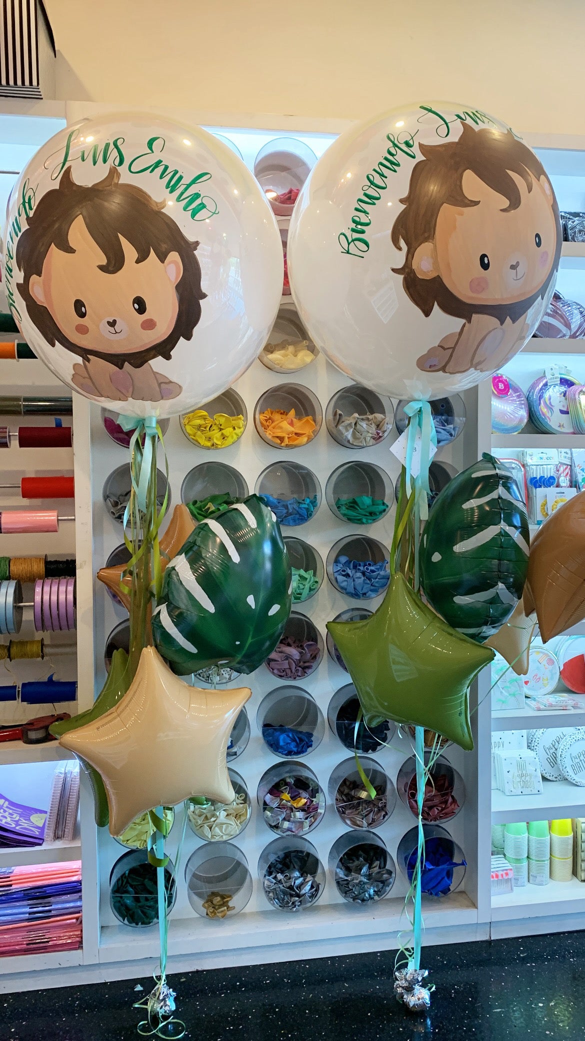 La imagen es sólo un ejemplo del estilo de globo, debido a que tu globo es totalmente personalizado, no quedara como el de la foto.